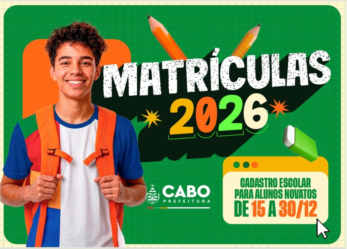 Matrículas 2026: Prefeitura do Cabo abre cadastro escolar para alunos novatos na Rede Municipal