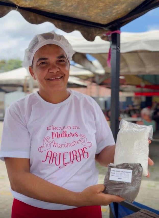 Ludiane da Silva, de 40 anos, agricultora e microempreendedora, conta que todos os produtos comercializados são derivados dos alimentos cultivados por ela. “Também sou agricultora e tudo o que vendo vem do meu plantio. Faço pé de moleque, farinha de mandioca, tapioca, torta salgada e também café de milho”, para a expositora, participar da feirinha além de ajudar a divulgar seus produtos também colabora com a composição da renda familiar. “Esse é o meu trabalho, minha renda vem das vendas dos meus produtos. Participar da feirinha ajuda bastante na composição da renda e também na divulgação do meu trabalho”, disse Ludiane.