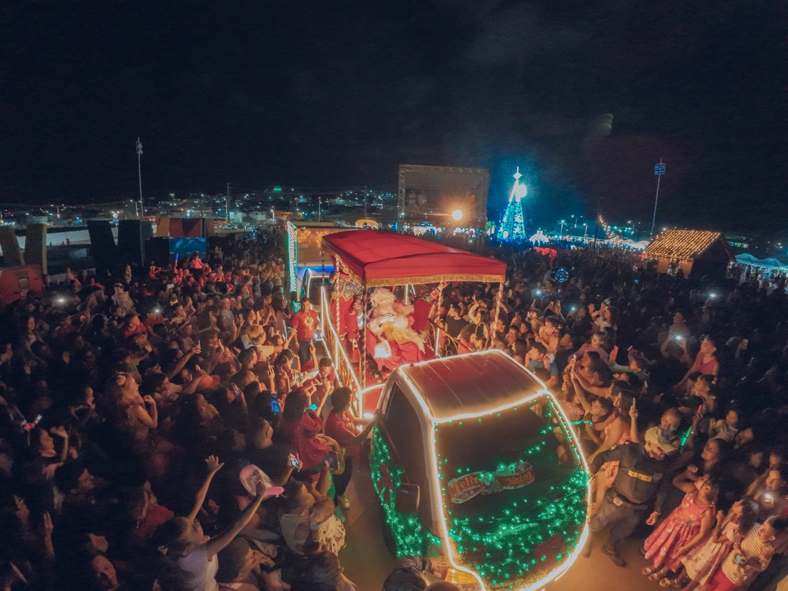 Após a projeção foi anunciada a chegada do tão esperado Papai Noel, que percorreu a praça acenando e sorrindo, distribuindo alegria. A presença da Guarda Municipal e de agentes garantiu um trajeto seguro para que todos pudessem aproveitar.