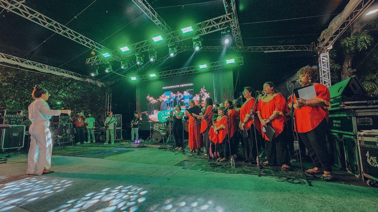 A apresentação do Coral e da Orquestra Popular Maria Nice, vinculados à Secretaria da Mulher do Cabo de Santo Agostinho, marcou a programação natalina promovida pela Prefeitura, na noite desta quarta-feira (17), no Parque dos Eucaliptos, em Ponte dos Carvalhos.