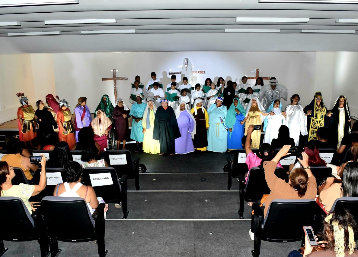 Os idosos acompanhados pelo Serviço de Convivência e Fortalecimento de Vínculos da Secretaria Municipal de Assistência Social, apresentaram, nesta quinta-feira (09), o espetáculo “Paixão de Cristo da Pessoa Idosa”, realizado no auditório do Centro de Professores Elmo de Freitas.